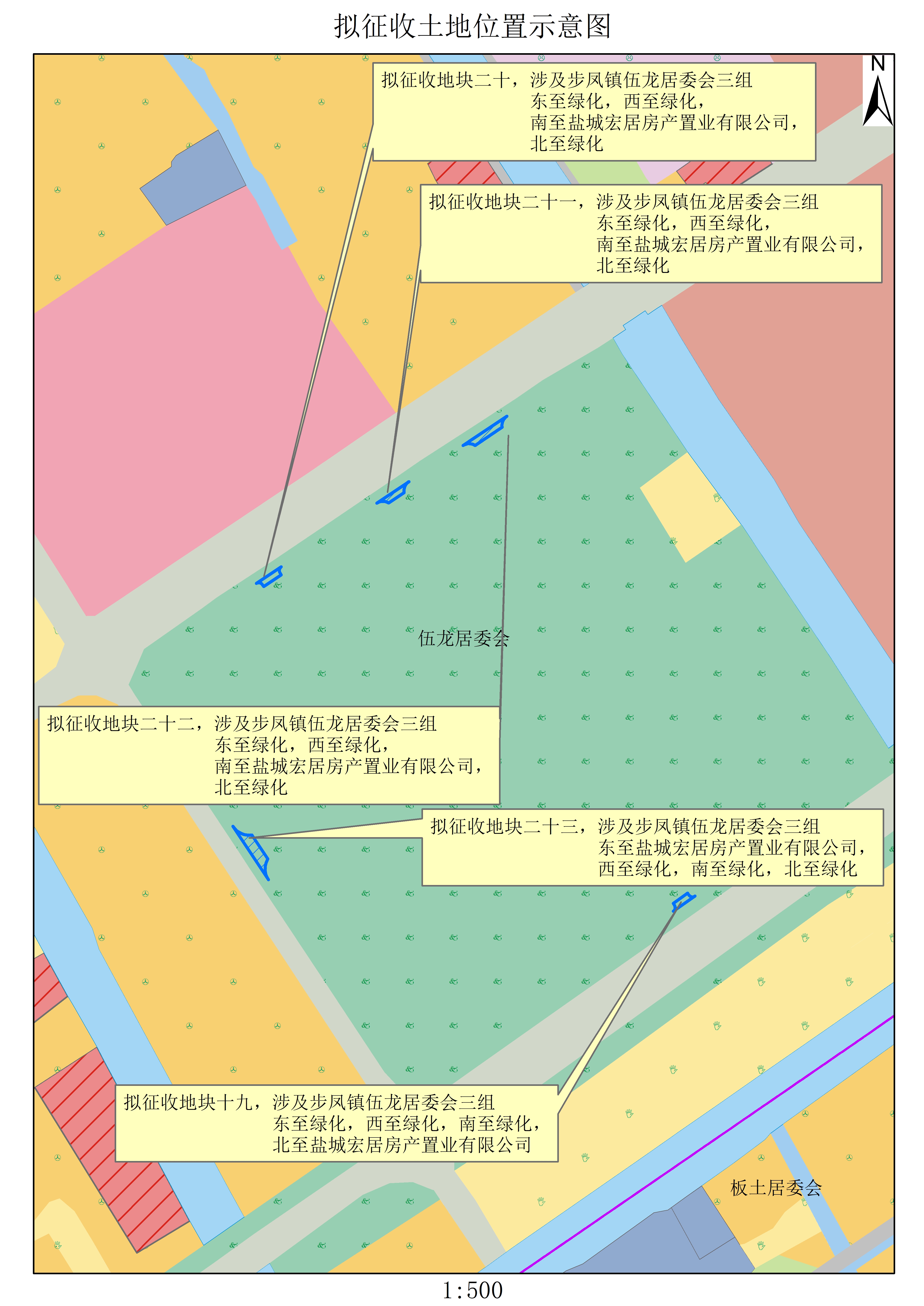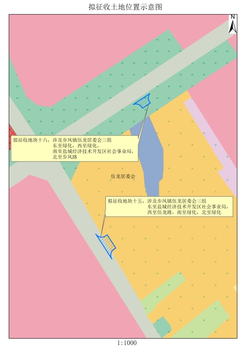 位置范围:东至绿化,南至盐城经济技术开发区社会事业局,西至绿化,北至步凤路。拟征收土地位置详见附图。