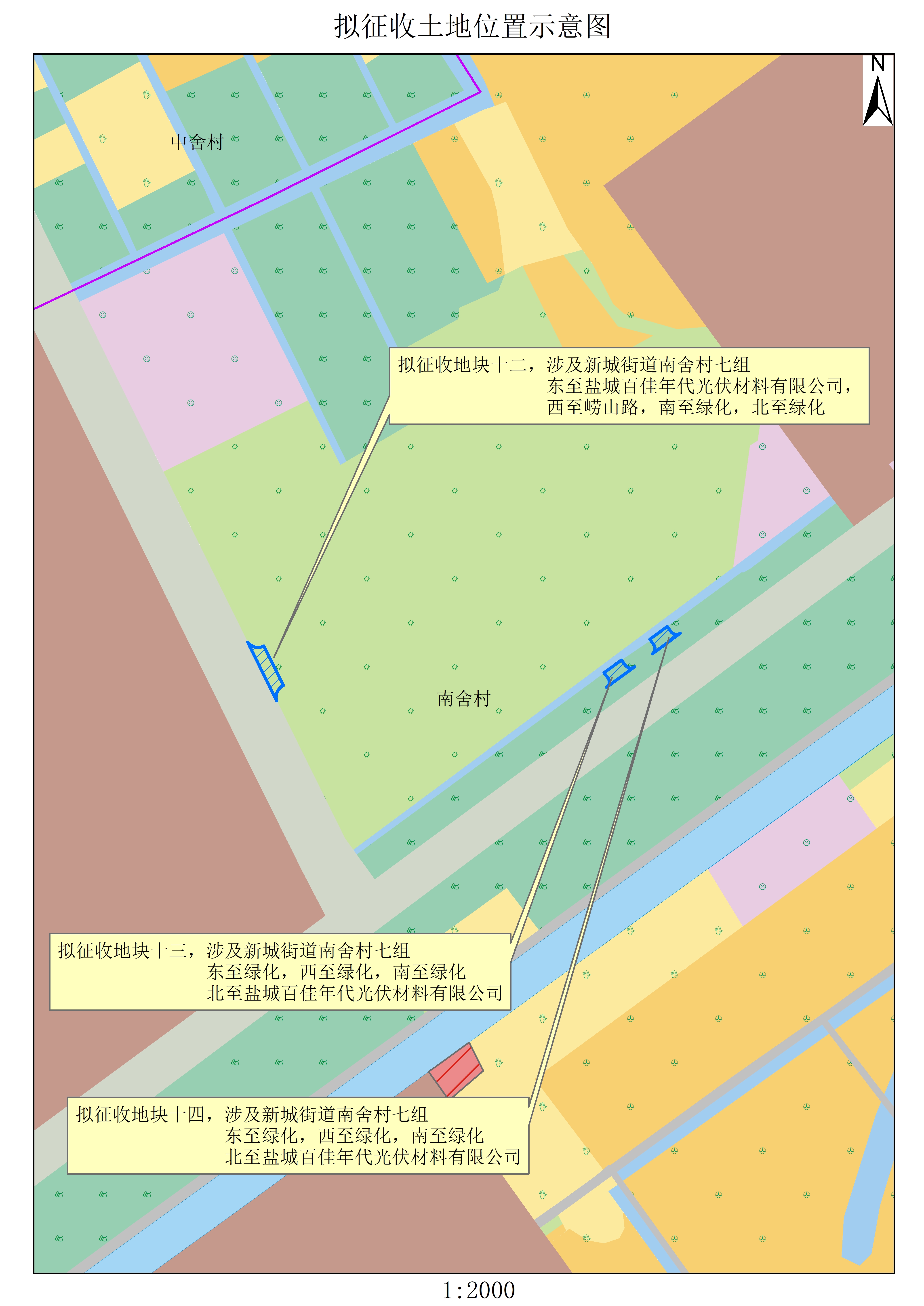 位置范围:东至盐城百佳年代光伏材料有限公司,南至绿化,西至崂山路,北至绿化。拟征收土地位置详见附图。